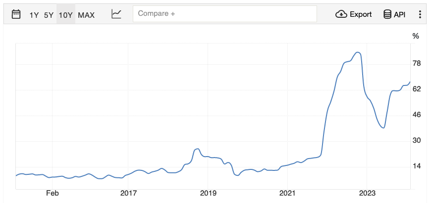 Turkish annual inflation soars to 67% in February (CNBC) 📊