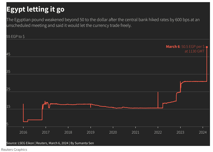 Egypt secures IMF deal after pound plunge, bumper rate hike (Reuters) 📊