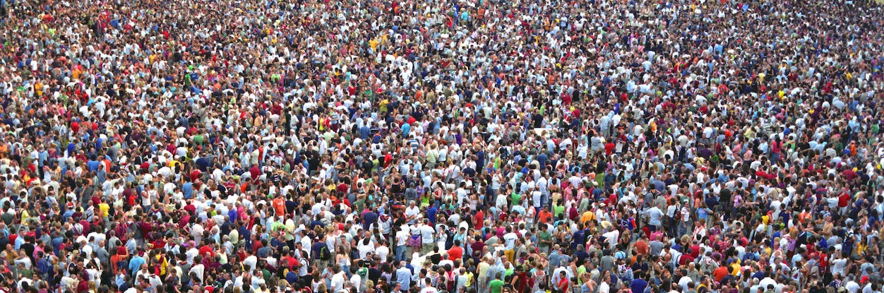 We would need to have 100,000 stadiums, at 80,000 seats each, to be able to seat the entire population of the earth.