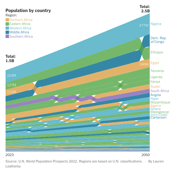 “In the 1970s and 1980s, when China, South Korea and Japan were the engines of population growth, their factories were filled with young people producing clothes, cars and TVs. It made them rich and lifted hundreds of millions out of poverty. Africa is poorly positioned to repeat that feat. Other than South Africa and a handful of countries in North Africa, most of the continent has failed to industrialize. In fact, it is losing ground: Africa’s share of global manufacturing is smaller today than it was in 1980. Infrastructure is an obstacle. Six hundred million Africans, or four in 10, lack electricity. An average American refrigerator consumes more power in a year than a typical person in Africa. Major roads and railways often lead to the coasts, a legacy of extractive colonialism, which inhibits trade between countries. And the baby boom endures, smothering economic growth. Other regions, like East Asia, prospered only after their birthrates had fallen substantially and a majority of their people had joined the work force — a phenomenon known as the “demographic transition” that has long driven global growth. Britain’s transition took two centuries, from the 1740s to the 1940s. Thailand did it in about 40 years. But in Africa, where birthrates remain stubbornly high — nearly twice the global average — that transition has proved elusive. For legions of jobless and frustrated young Africans, that leaves only one good option: Get out.”
