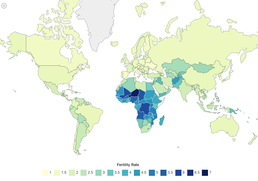 Compare that to the fertility rate in Niger, the dark blue shaded country in the map above.