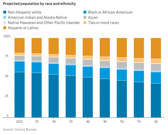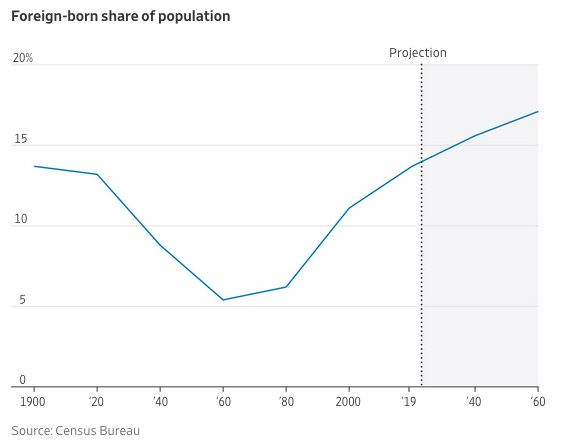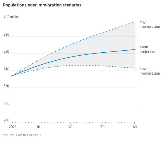 That WSJ article provides the following infographics to show how immigration will impact the US over the coming years: