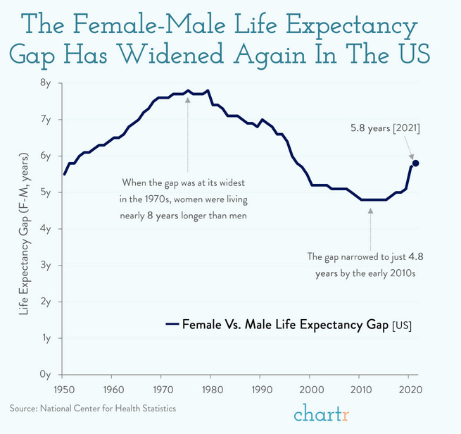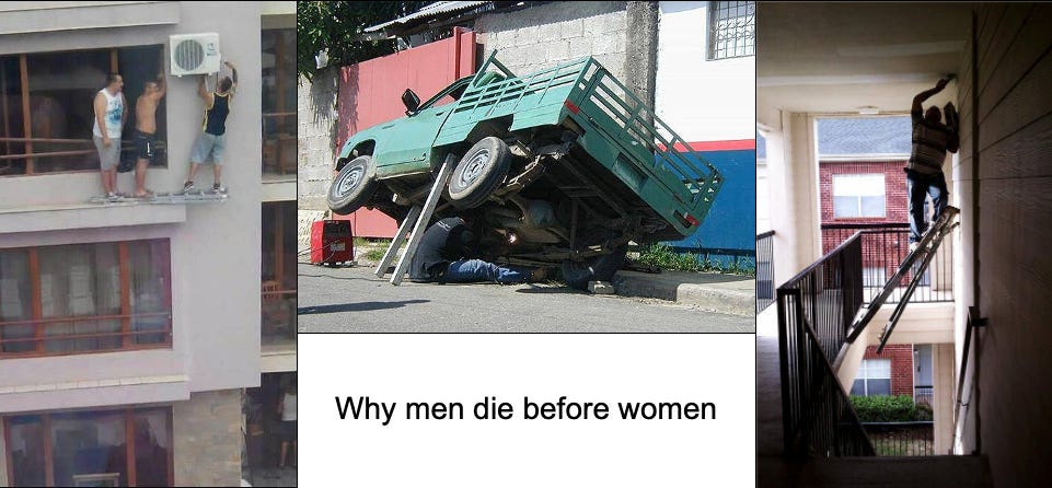 Being a married man, whose wife reads these posts (I think), I will refrain from any jokes as to why men live shorter lives than women; instead I’ll just post this: