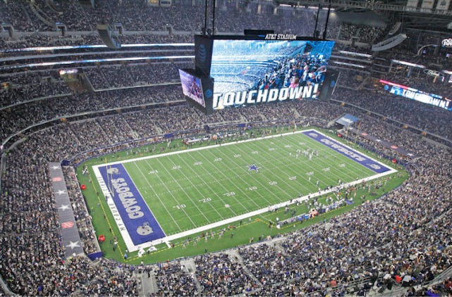 And, at 70 acres apiece, we’d need 7,000,000 acres for all those stadiums. Thankfully, Texas is over 171,000,000 acres in size, so we’d have plenty of room, but traffic would be a nightmare (even more than it already is).