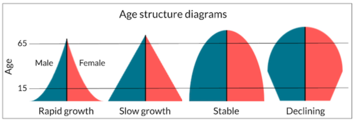 Going back to our age structure diagram, you’ll note this shape reflects rapid growth.